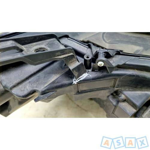 Присутствует небольшая трещина у основания верхнего кронштейна крепления фары, притертость сбоку на пленке (см.фото).